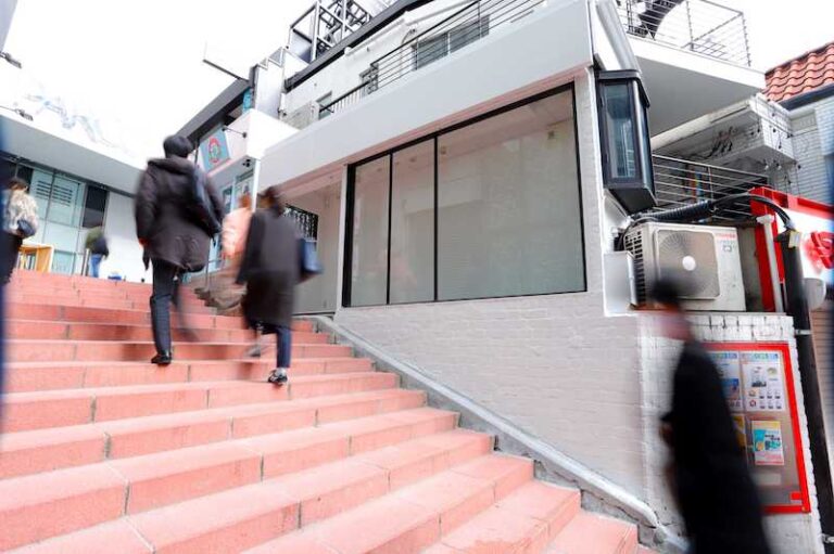 渋谷パルコすぐ スペイン坂にあるアニメショップwapiwapiが入っているビル入口の路面。